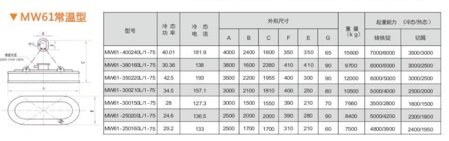 本系列用于窄小的車箱狀容器高效的裝卸廢鋼鐵。根據(jù)車箱形狀量身定做,對(duì)于吊運(yùn)廢鋼,電磁鐵一般設(shè)計(jì)成兩頭半圓形的結(jié)構(gòu),故又稱橢圓形電磁鐵,由于各個(gè)鋼鐵企業(yè)的料斗尺寸不一樣,故規(guī)格再不斷增加中,以下所列表型號(hào)僅供參考,特殊尺寸可定制。