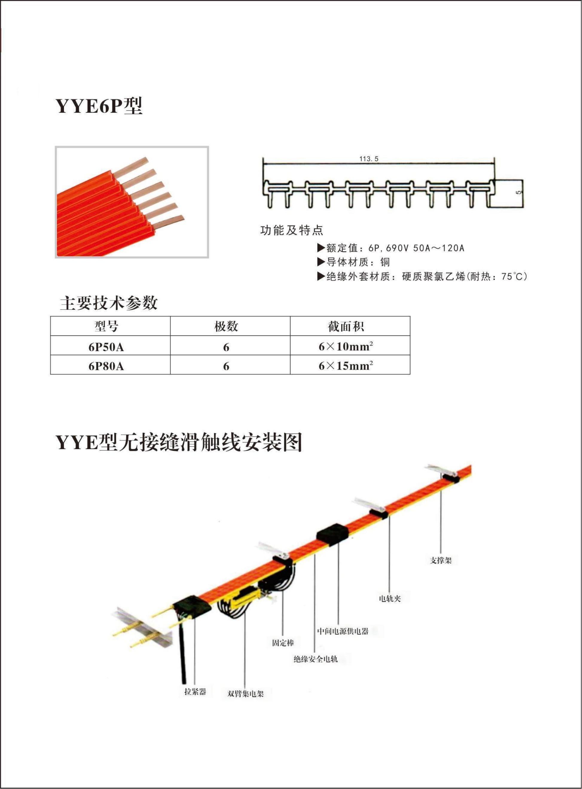 YYE型3極、4極、6極無接縫滑觸線